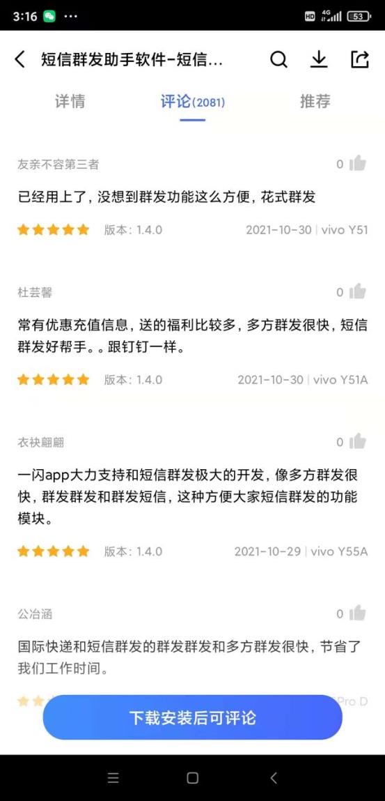 不過前段時間我在網(wǎng)上沖浪,偶然發(fā)現(xiàn)了紅楓葉傳媒研發(fā)的短信群發(fā)軟件,不用不知道,一用嚇一跳。它可以一次性給上百個客戶群發(fā)短信,還能對客戶進(jìn)行分組,精準(zhǔn)群發(fā)營銷內(nèi)容。價(jià)格方面也對咱們這種小百姓很友好,軟件不到一杯奶茶錢,群發(fā)套餐500條也才36塊錢,分分鐘就能回本。安卓和iOS系統(tǒng)都能使用,我下載的時候看到他們的下載量都破千萬了。用了它之后,飯店的生意就蹭蹭蹭地漲,每天雖然累,但是累得特充實(shí)~