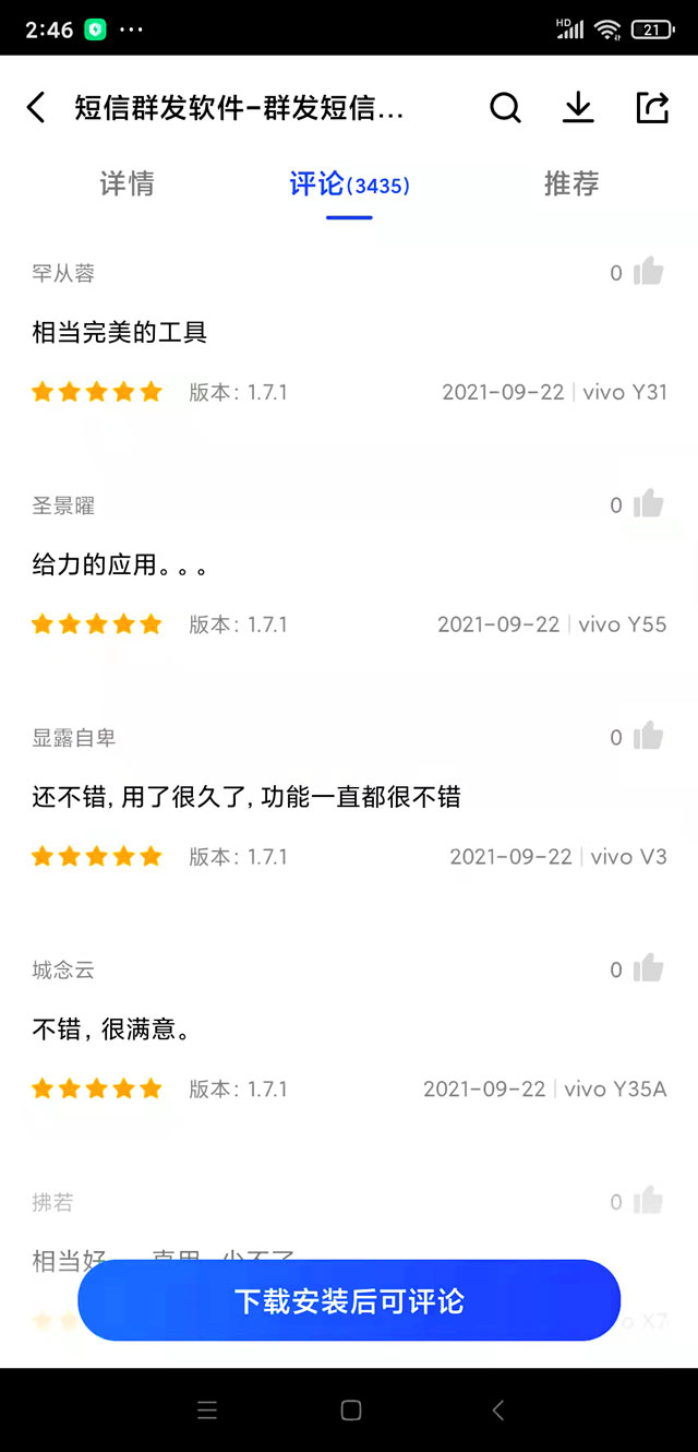 并且,這款A(yù)PP安卓、蘋果應(yīng)用商店都能下載,換手機(jī)也不要怕。我訂購(gòu)的是20萬條短信8700元,價(jià)格很適合,可以發(fā)很久,發(fā)完為止,不會(huì)過期。